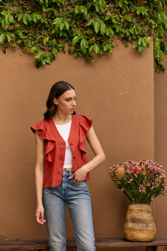 AgotadoBLUSA LINO INES TERRACOTA