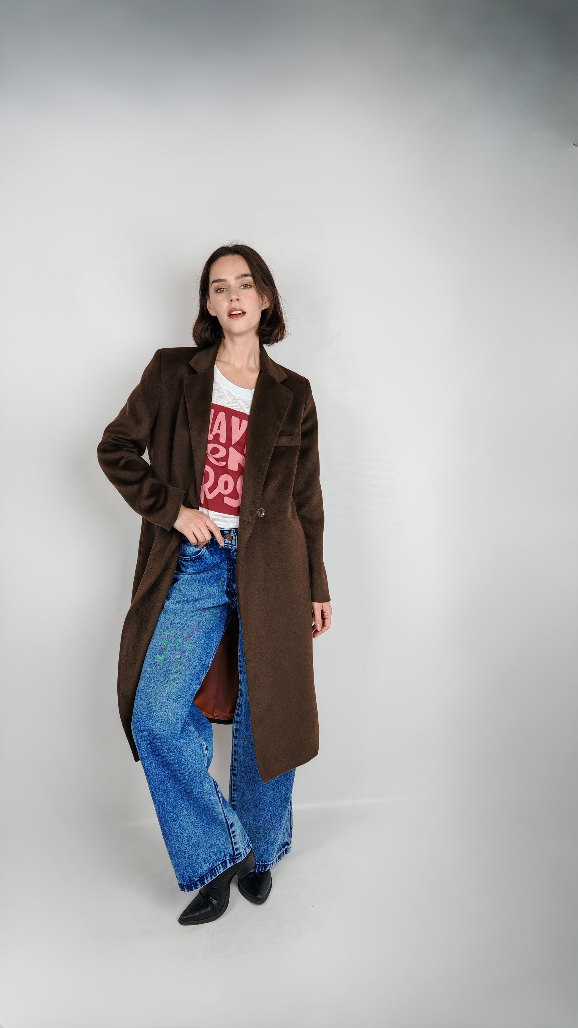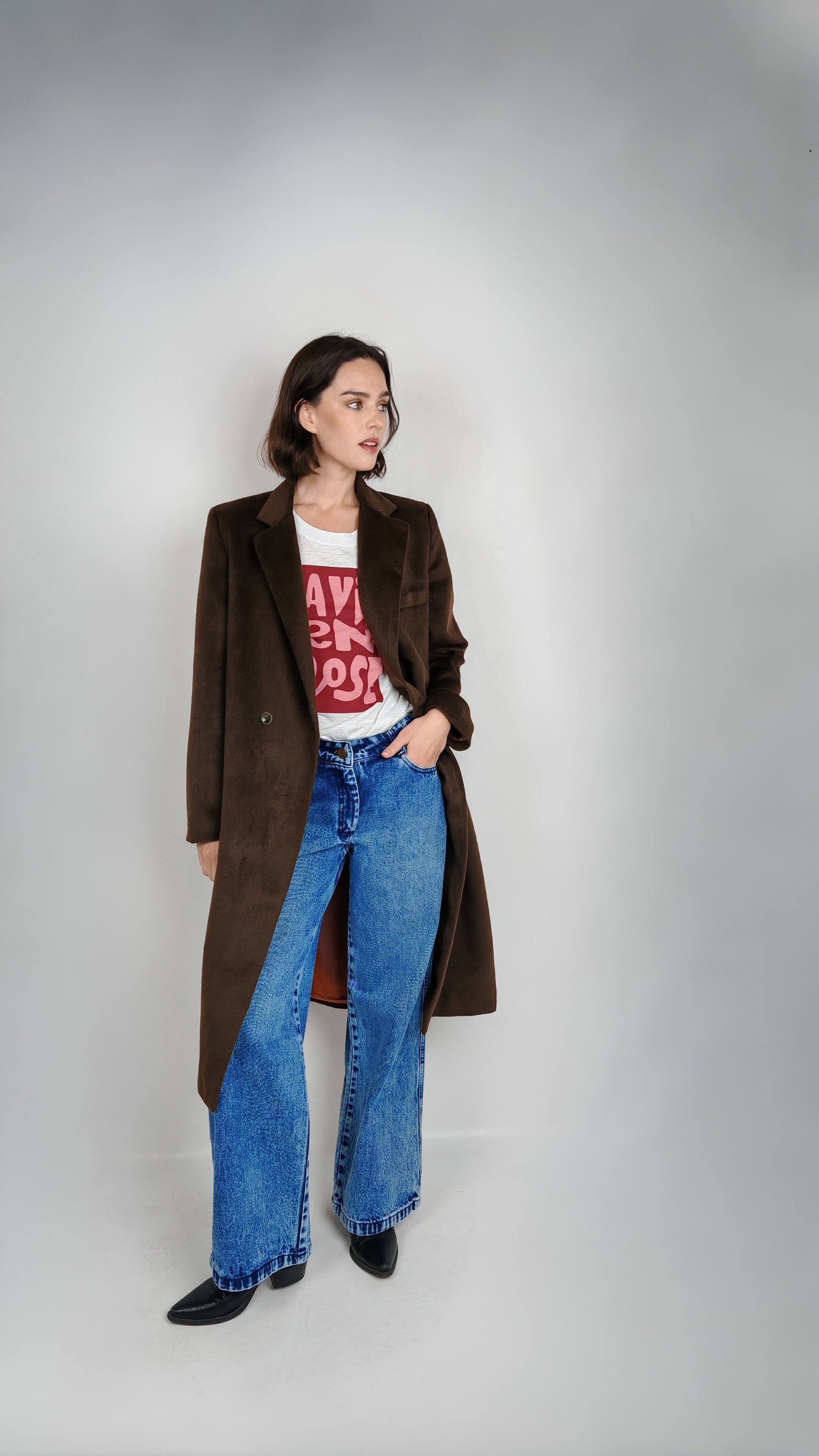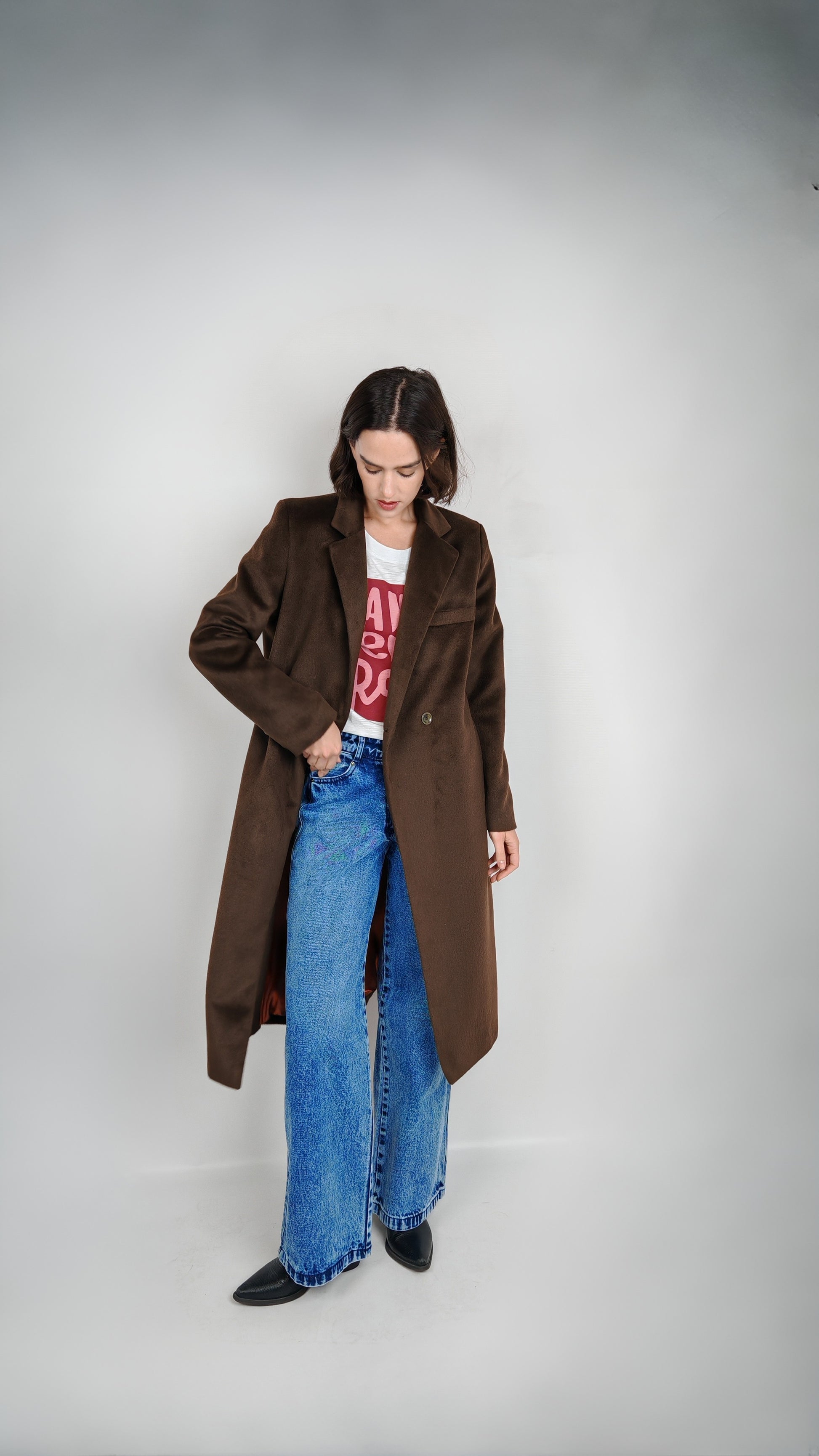 Nuestro abrigo Leonor tiene un elegante diseño cruzado, con una textura de pelo suave, y botones de Carey que son exclusivos. Úsalo para ir a la oficina, en el día a día, y también para un look más nocturno.