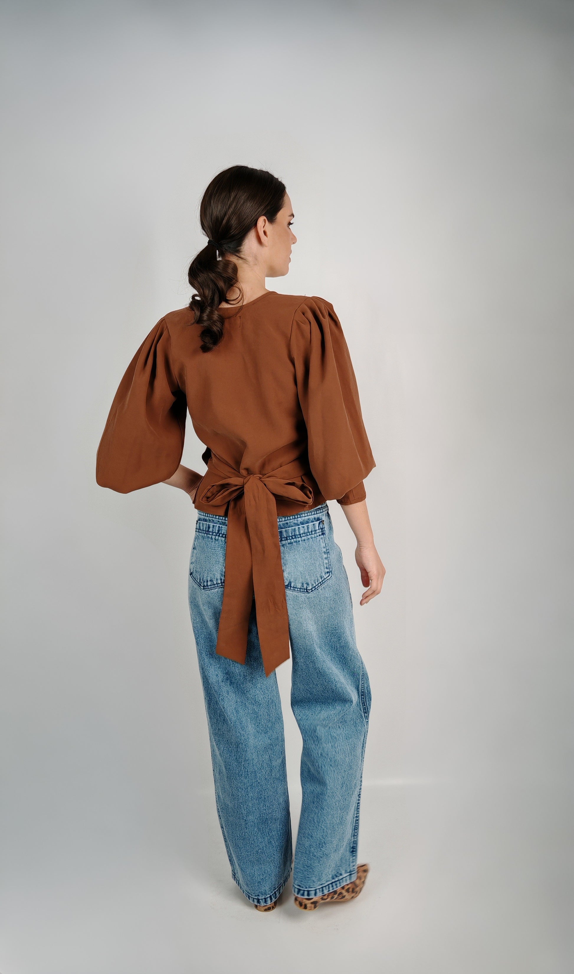La blusa Carolina destaca por sus mangas globo, peplum en la cintura y un lazo que puedes ajustar en la espalda o en el frente para acentuar tu cintura. Es versátil y se puede combinar fácilmente con una variedad de prendas, desde jeans hasta faldas elegantes, permitiéndote crear looks únicos que se adaptan a tu estilo personal.