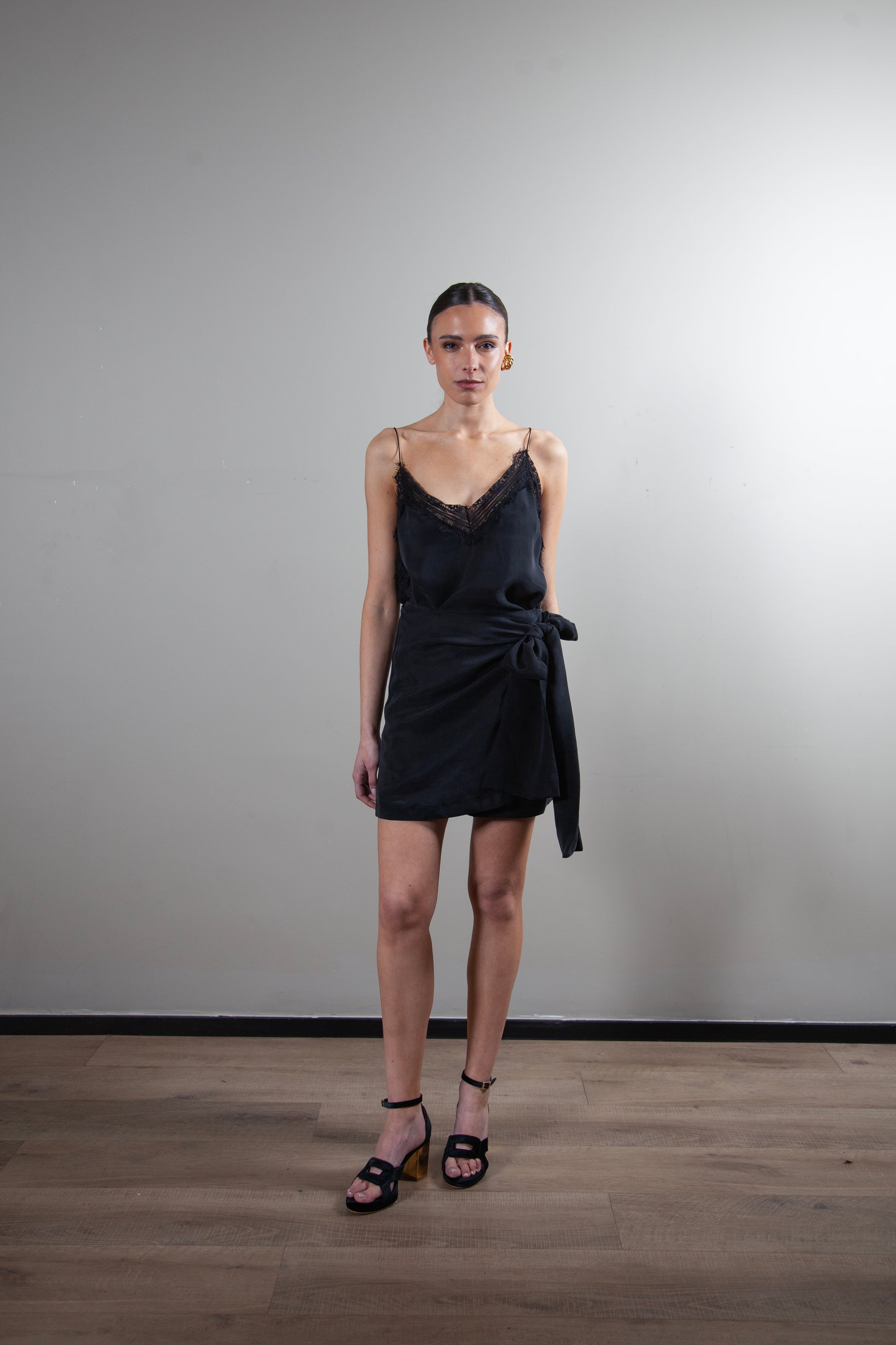 La falda Adela es una falda mini envolvente con un lazo que puedes anudar a tu gusto para un ajuste perfecto. Su diseño versátil y el suave tejido de cupro y viscosa la convierten en una prenda atemporal y cómoda que te hará sentir única. Combínala con la blusa Candelaria para un look completo y femenino, o con un top más simple para que la falda sea la protagonista.