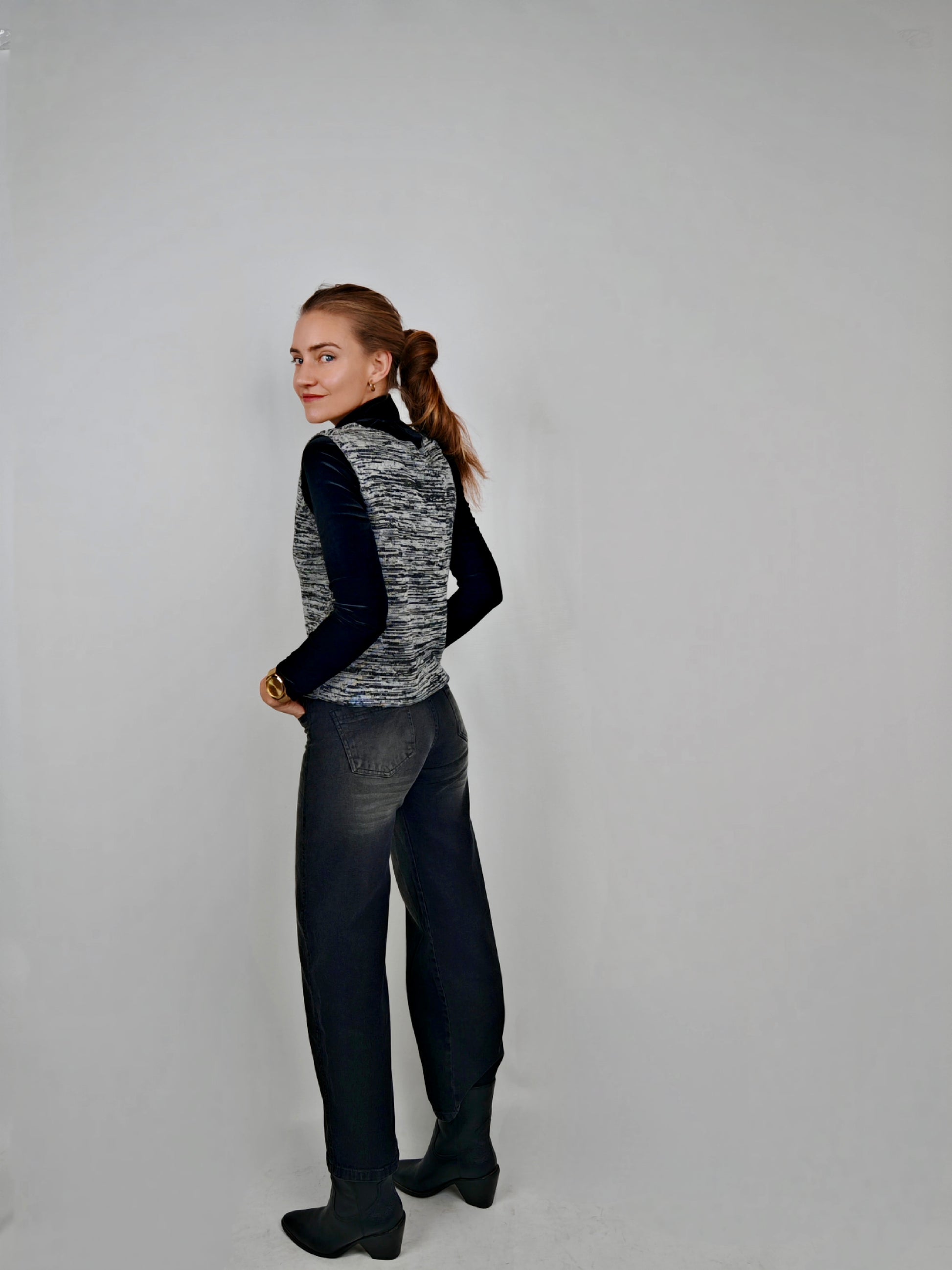 Ideal para quienes buscan una prenda que combine comodidad y estilo, el Gilet Octavia es muy cómodo, y al ponerse en conjunto con el pantalón Octavia queda un look efortless chic. También lo puedes usar con tus jeans favoritos para un look más relajado. Su confección es de alta calidad, es un gilet tejido que se compone de 50% algodón tanguis, 48% viscosa, y 2% lurex, le dan una caída, suavidad y resistencia único, convirtiéndolo en un básico esencial en tu guardarropa. El algodón tanguis es un algodón de altísima calidad, lo que da suavidad pero a la vez resistencia de la prenda. Tiene hilos de lurex plateados que le dan un brillo sutil, y botones forrados.