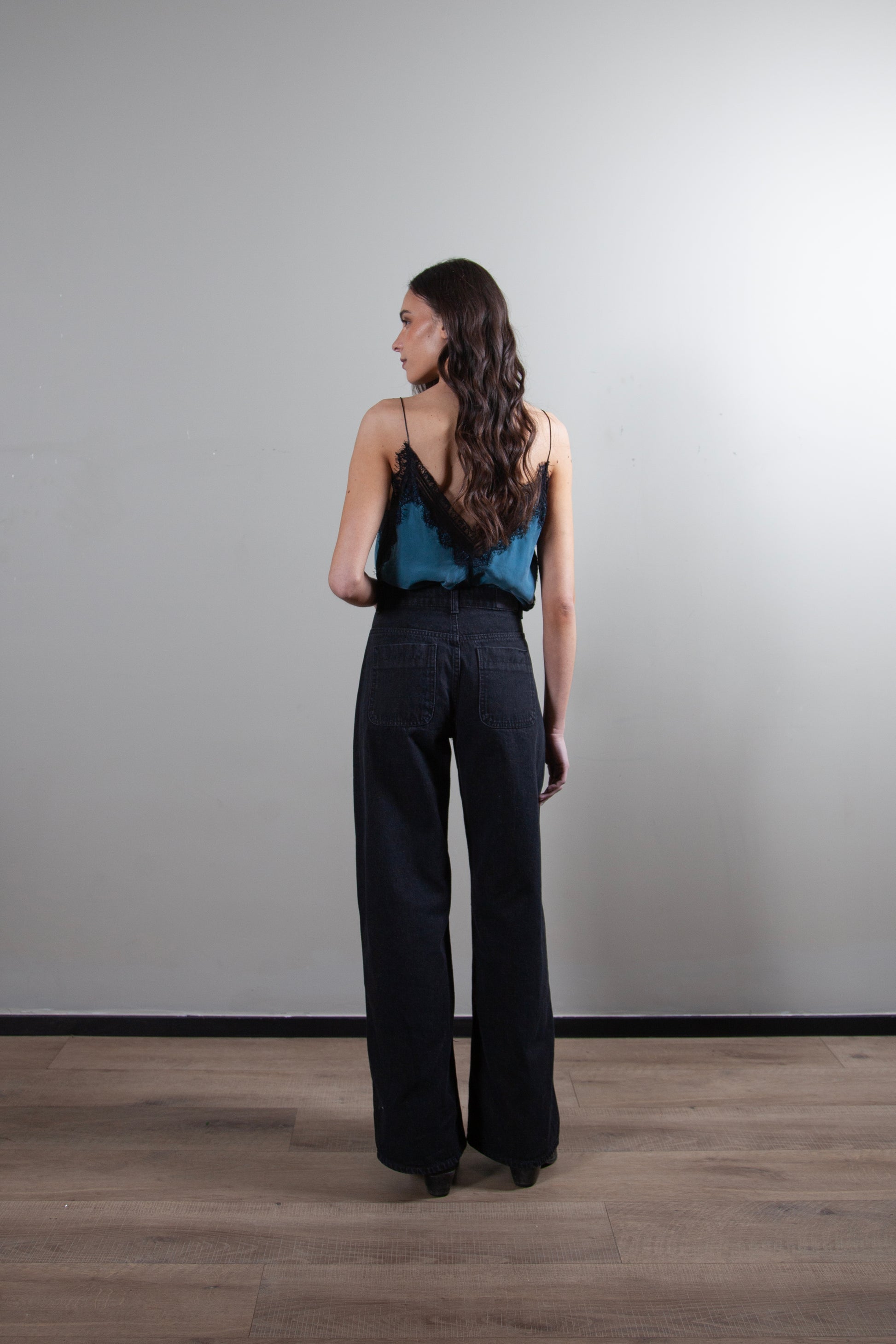 Los jeans Mara son la pieza clave para un look sofisticado y moderno. Confeccionados en 100% algodón, su tacto es suave y su corte wide leg te ofrece una silueta fluida y relajada, perfecta para el día a día. El color negro lavado y el cierre delantero los convierten en un pantalón versátil que puedes combinar fácilmente.