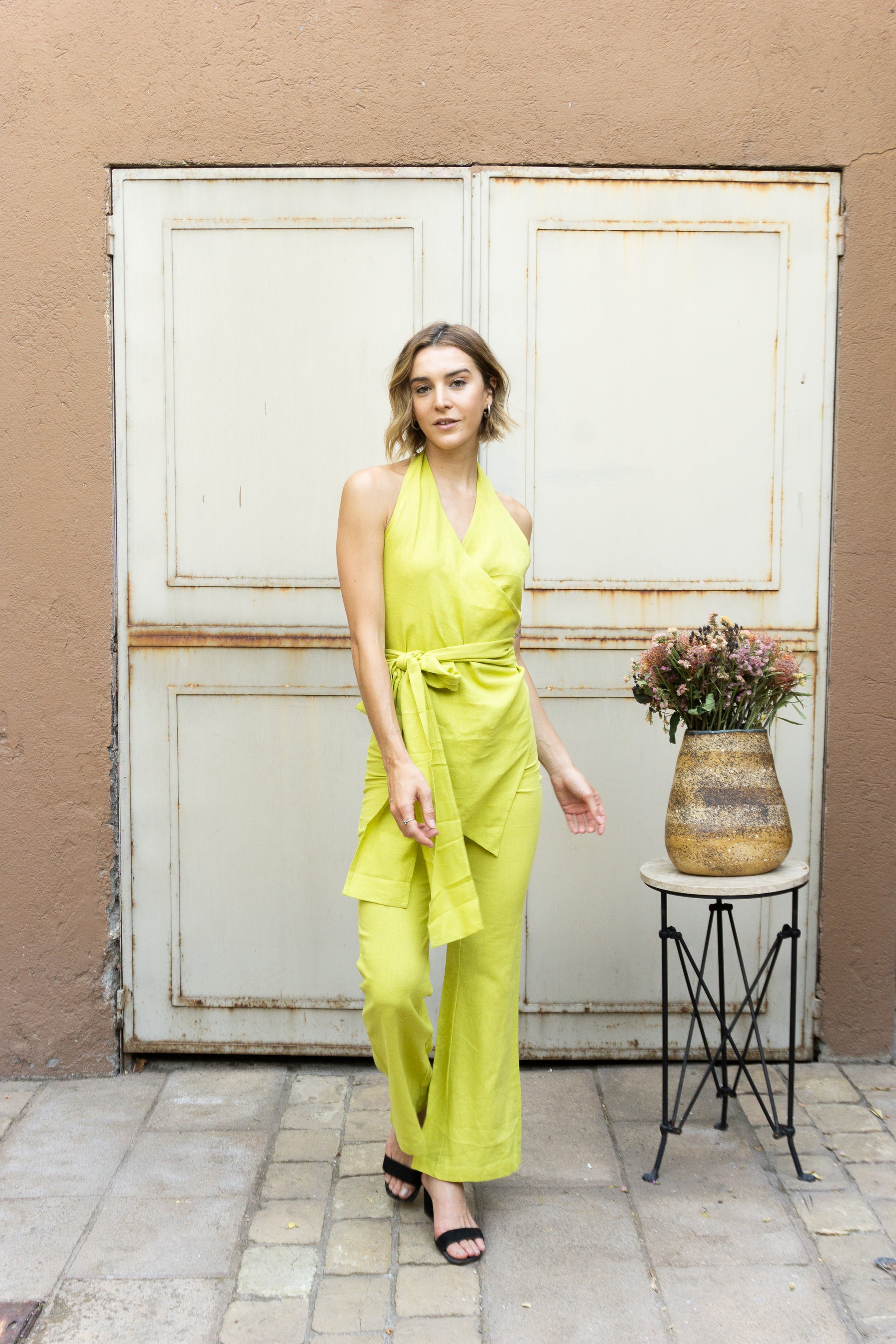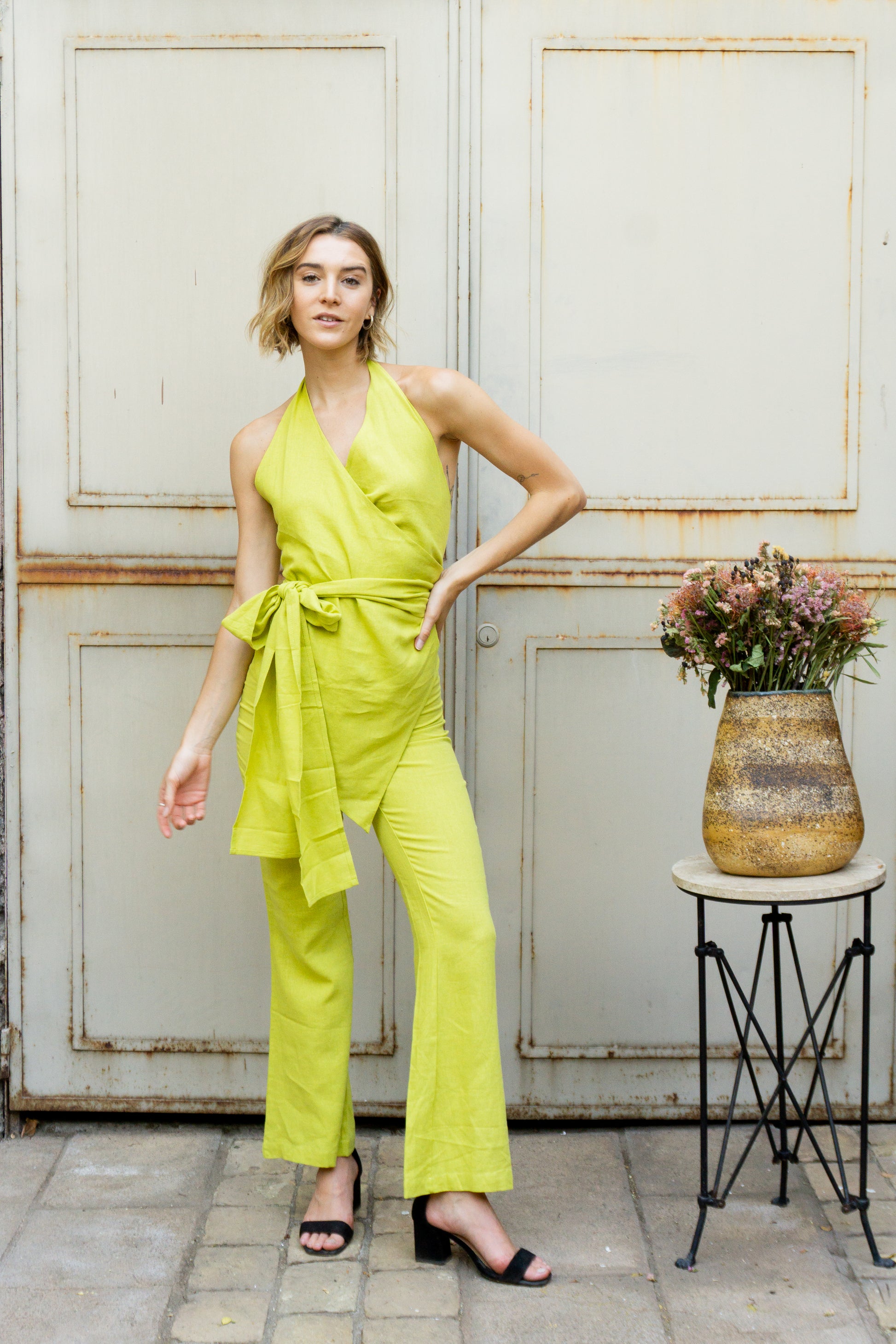Top de lino con espalda rebajada, con diferentes formas de amarra.